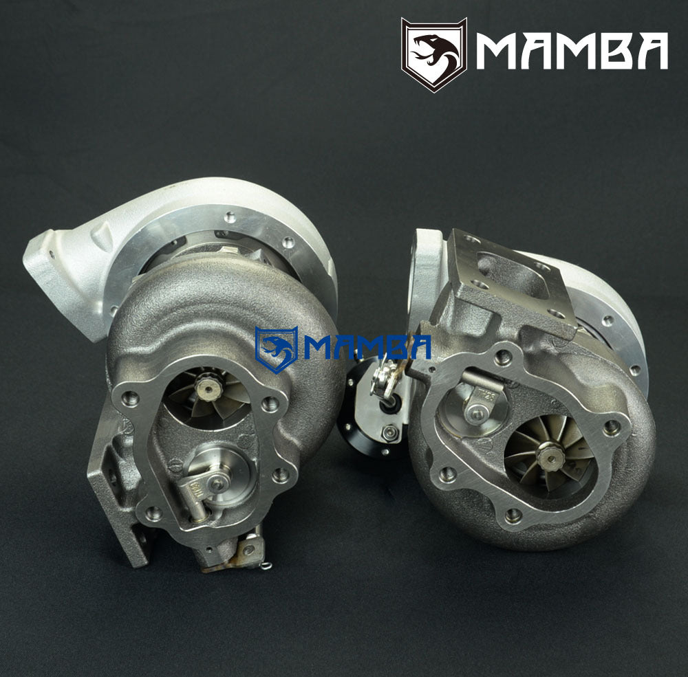 Brand New in Box Balanced by Schenck Bolt-On Turbo. Application Nissan VG30DETT Z32 Twin Turbo Support HP: 450~650HP Specs Compressor wheel: 46.5/60.1/60T (7+7 GTX Billet Blade) Turbine wheel : 42.0/53.0/62T (9 Blade High Flow GT25R) Turbine Housing A/R .57 Compressor Housing A/R .48 Actuator 0.8bar spring is pre-installed on the adjustable actuator Additional 1.2bar and 1.5bar spring go with box. Gen 3 piston type of adjustable actuator. Kit Includes 2 x MAMBA GT2560R-60T turbocharger 2 x 4AN 1/4" (ID) oil feed line kit with 1.0mm restrictor 4 x 6AN 3/8" (ID) water line kit 2 x Oil return hose kit 2 x Turbine inlet gasket 2 x Turbine outlet gasket 2 x Cover inlet gasket 2 x Cover outlet gasket 18 x M8x1.25 stud kit Everything shown on first picture is included