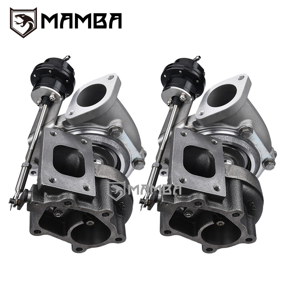 Brand New In Box Application Nissan RB26DETT BNR32/BCNR33/BNR34 GT-R HP Support: 500~760 HP Wheel Compressor Wheel: 47.2/60.1/62T/Performance LEP Design/7+7 Blade/2618 Billet) Turbine Wheel: 47.0/53.0/76T/GT28R/D5 (5+5 Blade)/Performance Design Comp. Housing A/R.65 Compressor Inlet: Bolt-on flange Compressor Outlet: Bolt-on flange Turbine Housing A/R.64 IWG Turbine Inlet: T25 (Bolt-on) Turbine Outlet: 5 Bolt (Bolt-on) Actuator 0.8bar spring is pre-installed on the adjustable actuator Additional 1.2bar and 1.5bar spring go with box. Bearing Ceramic dual ball bearing Inconel cage Kit Includes 2 x MAMBA Gen III GTX2860R Turbo. 2 x 1/4” 4AN PTFE Oil Feed line with 1.0mm restrictor. 2 x 5/16” 4AN Turbo coolant line 2 x 3/8” 6AN turbo coolant line 2 x SUS304 T25 turbine Inlet Gasket 2 x SUS304 5-bolt turbine Outlet Gasket 18x SCM440 8mm stud Everything shown on first picture is included.