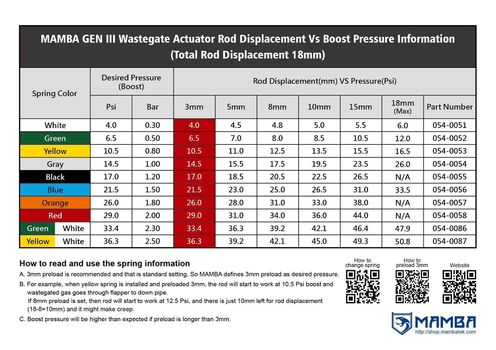 MAMBA D5-7 3” G25-550 Ball Bearing turbocharger with .72 IWG Dual V-Band turbine housing Application Featured MAMBA D5 (5 long + 5 short, Dual 5) turbine wheel spools faster and reduce back pressure to support higher top end HP. MAMBA 7+7 performance billet LEP compressor wheel supplies more air flow than others. Universal use for 1.5L~3.0L gasoline engine. Support 350~580HP Max boost: 3.4Bar / recommend 1.5~1.8bar for daily street car. Specs Compressor wheel: 48.4/60.0/65T/7+7 Blade/LEP Design/Forward Turbine wheel: 49.0/54.0/84T/D5 (5+5) Compressor housing inlet OD: 3” (76.2mm) Compressor housing outlet OD: 2” (51mm) Compressor housing A/R: .70 Turbine housing A/R: .72 Turbine housing flange: Dual V-Band Bearing Ceramic dual ball bearing Inconel cage Cooling Oil & water-cooled Actuator 0.8bar spring is pre-installed on the adjustable actuator Additional 1.2bar and 1.5bar spring go with box. Kit Includes 1 x MAMBA D5-7 G25-550 ball bearing turbocharger 1 x 70cm 4AN PTFE Turbo oil feed line kit 2 x 20cm 6AN PTFE Turbo water line Kit 1 x 10AN Turbo oil return flange kit 1 x Turbine inlet flange kit 1 x Turbine outlet flange kit 1 x Vacuum hose Kit Everything shown in first picture is included.