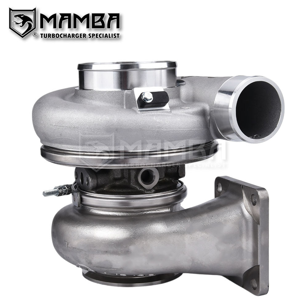 Application Featured MAMBA MGD D5 (5 Long + 5 Short Blade, Dual 5) turbine wheel spools faster and reduces back pressure to support higher top end HP. Replace and Upgrade MAMBA MGD / Garrett G40-1150 Ball Bearing with .85 T4 V-Band Turbine Housing. Replace and upgrade Garrett turbo P/N: 757707-0032. Support 500~1150HP Displacement: 2.0~6.0L