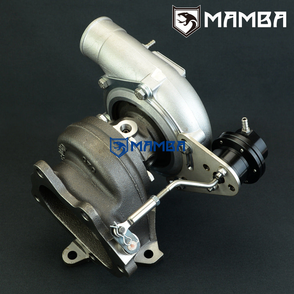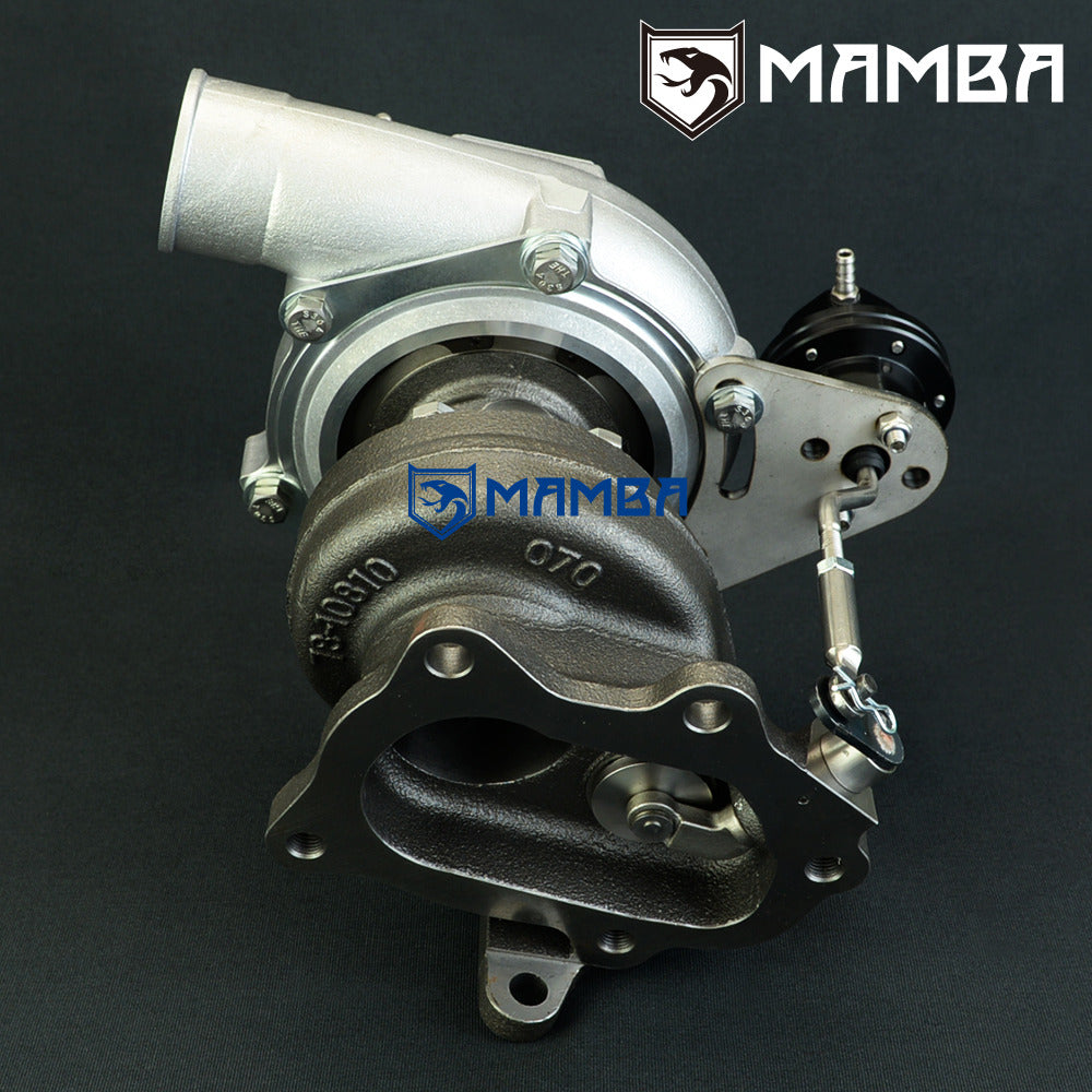 Support 300~480HP Max Boost: 3.4Bar / Recommend 1.5~1.8bar for daily street car. GC8 / GDA / GDB EJ20 EJ25 turbo with single scroll turbo Specs Compressor Wheel: 47.1/60.1/Trim 62 Turbine Wheel: 47.0/53.8 mm (9 Blade) Compressor Housing Inlet OD: 2.25” (57.2mm) Compressor Housing Outlet OD: 2” (51mm) Compressor Housing A/R: .60 Turbine Housing A/R: .64 Bearing Ceramic Dual Ball Bearing (NTN JAPAN) Cooling Oil & Water-Cooling Actuator 0.8bar yellow spring is pre-installed on the adjustable actuator Additional 1.2bar (Black) and 1.5bar (Blue) springs go with box. Kit Includes 1 x MAMBA 2.25” GT2860RS Ball Bearing Turbocharger 1 x PTFE Turbo Oil feed line kit 2 x PTFE Turbo Water Line Kit 1 x Turbo Oil Return Line Kit 2 x Turbine Inlet & Outlet Gasket 1 x Vacuum Hose Kit 1 x 12mm to 4AN adapter (Convert Factory M12x1.0 adapter to 4AN that connects PTFE Line) 8 x Forged SCM415 Stud Kit with Copper Nut