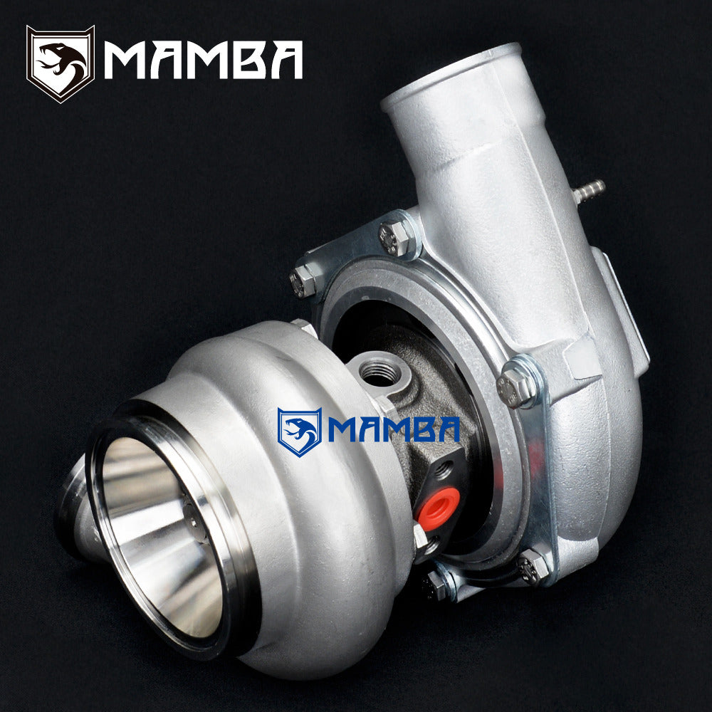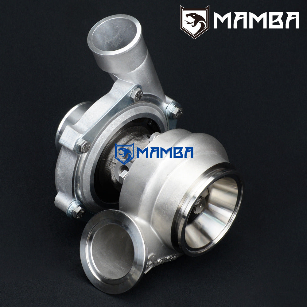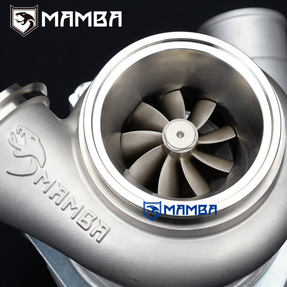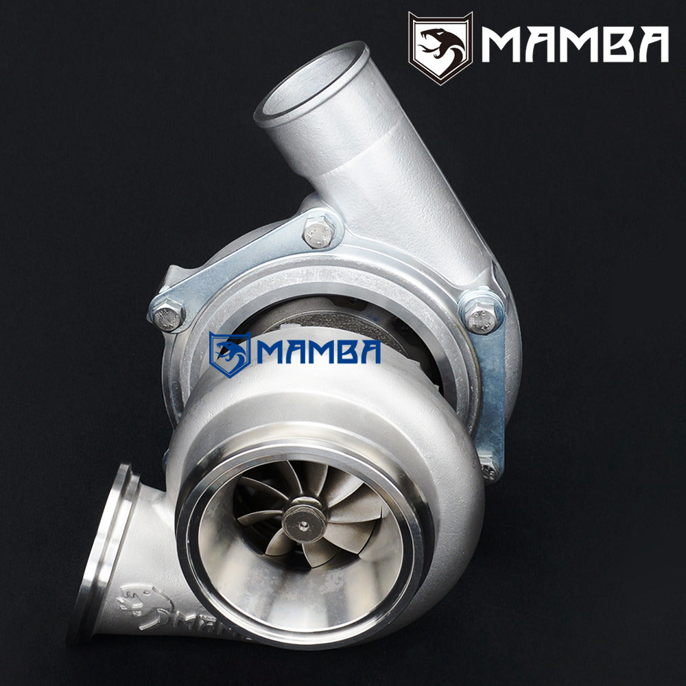 MAMBA Universal 7+7 2.25” A/R.60 GT2860RS Ball Bearing Turbocharger + .61 Dual V-Band Housing Application Universal Use HP Support: 250~380 HP Engine: 1.5~3.0L (Gasoline), 3.0~6.0L (Diesel) Specs Compressor wheel : 47.2mm/60.1mm/62T (Performance 7+7 Blade Billet Wheel) CompTurbine wheel : 47.0mm/53.8mm/76T (9 Blade GT(X)28R) Compressor Housing A/R:.60 (GT28R/PC200/Non Anti Surge) Compressor Inlet: 2.25” / 57.1mm Compressor Outlet: 2” / 50.8 mm Turbine Housing A/R : .61 Turbine Inlet: 2.35” V-Band Turbine Outlet: 3” V-Band Actuator 0.8bar spring is pre-installed on the adjustable actuator Additional 1.2bar and 1.5bar spring go with box. Kit Includes 1 x MAMBA 2.25” GT2860RS Turbo. 1 x 70cm 1/4” PTFE Oil Feed line with 1.0mm restrictor. 2 x 25cm 3/8” PTFE Water line 1 x 3/4” Oil return flange 1 x 2.35” V-Band Flange Kit 1 x 3” V-Band Flange Kit 1 x VSR balance sheet for the CHRA Everything shown on first picture is included