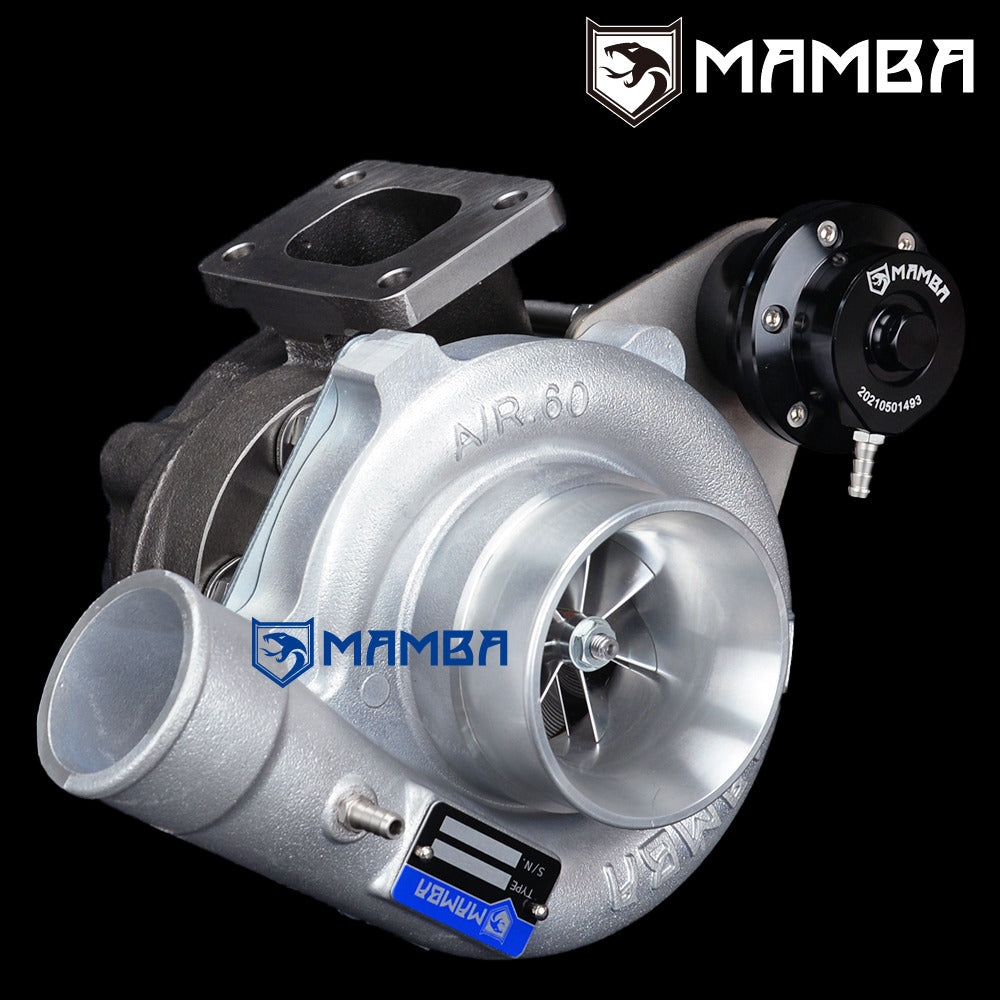 MAMBA Universal 7+7 3” A/R.60 GT2860RS Ball Bearing Turbocharger + .42 T25 5-Bolt Cast IWG Turbine Housing Application Universal Use HP Support: 250~380 HP Engine: 1.5~3.0L (Gasoline), 3.0~6.0L (Diesel) Specs Compressor wheel : 47.2mm/60.1mm/62T (Performance 7+7 Blade Billet Wheel) Turbine wheel : 47.0mm/53.8mm/76T(9 Blade GT(X)28R) Compressor Housing A/R:.60 (GT28R/PC200/Non Anti Surge) Compressor Inlet: 3”/76.2mm Compressor Outlet: 2”/50.8mm Turbine Housing A/R : .42 IWG (Cast) Turbine Inlet: T25 Turbine Outlet: 5 Bolt Actuator 0.8bar spring is pre-installed on the adjustable actuator Additional 1.2bar and 1.5bar spring go with box. Kit Includes 1 x MAMBA 3” GT2860RS Turbo. 1 x 70cm 1/4” PTFE Oil Feed line with 1.0mm restrictor. 2 x 25cm 3/8” PTFE Water line 1 x 3/4” Oil return flange 1 x SUS304 T25 Turbine Inlet Gasket 1 x SUS304 Turbine Outlet Gasket Everything shown on first picture is included.