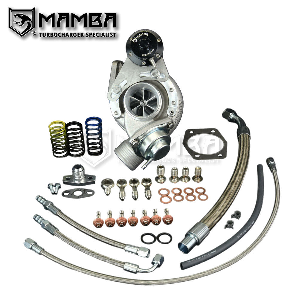 MAMBA 9-6 VOLVO 240 740 940 B230FK 2.3L TD04HL-16T-7 Turbocharger (300HP) Brand New In Box Complete CHRA balanced by SCHENCK MBRS110 Germany Application Bolt-On upgrade turbo for VOLVO 240/940/960 2.3L TD04H-13C with 6cm turbine housing to Monster TD04HL-16T-7 HP Support: 250~300HP Factory Turbo #: 49189-01000, 49189-01200, 49189-01210, 49189-01260, 49189-01270 1990-98 Volvo 940, 960 with B230FT Engine 1989-98 Volvo 740, 760, 940, 960 with B230FT Engine 1990- Volvo 940, 960 with B200FT 1991-98 Volvo 940 with B230FK Engine 1991-98 Volvo 940 with B230FK Engine Wheel Specs Compressor Wheel : 43.4/56 mm (Performance 6+6 16T Billet Wheel) Turbine Wheel : 45.6/52mm (9 Blade TD04HL High Flow) Actuator 0.8 Bar spring pre-installed. Additional 1.2bar and 1.5Bar are included in box. Bearing Journal Bearing Heavy Duty Thrust Bearing Kit included. Cooling Oil & Water-cooled system Turbine Housing 7cm (A/R .49) Conic Turbine Housing Kit Includes 1 x MAMBA Turbo 1 x 1/4” PTFE Oil Feed line with 2.5mm restrictor. 2 x 3/8” PTFE Water line 1 x 3/4” oil return flange 1 x SUS304 T3 Turbine Inlet Gasket Everything shown on first picture is included.