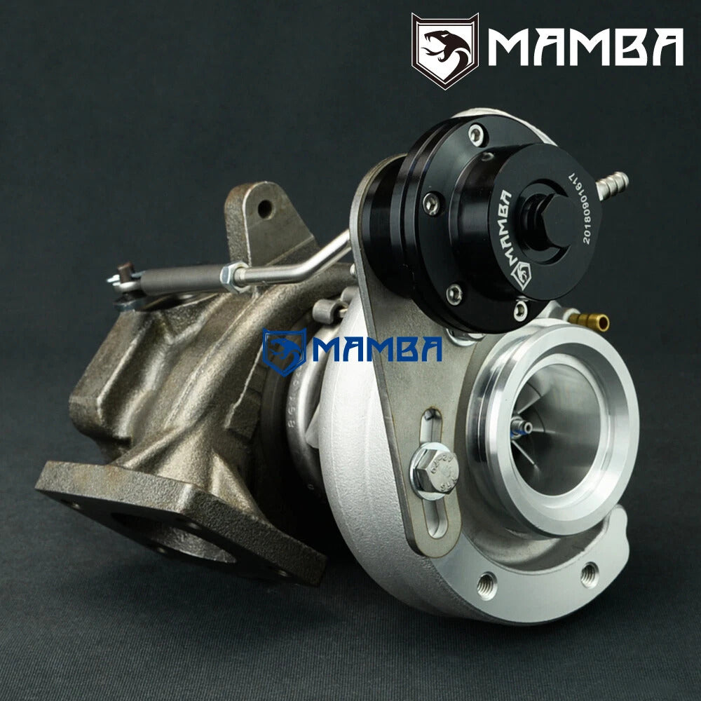 MAMBA GTX Billet for SAAB 9-3 / 9-5 B235R TD04HL-19T Turbocharger with 7cm Turbine Housing and 9 Blade Viper Turbine Wheel and Long Neck Cover inlet Complete CHRA balanced by SCHENCK MBRS110 Germany Application Replace and Upgrade 49189-01800 Factory Turbocharger directly (Long Neck) Note: 49189-01830 & 49189-01850 are short neck type. Wheel Specs Compressor wheel : 46 / 58 mm (TD04-19T / 11 Blade GTX Billet Compressor Wheel) Turbine Wheel: 45.6 / 52 (TD04HL Viper 9 Blade Turbine Wheel) Turbine Housing Nozzle Area : 7 cm^2 Turbine Inlet : T25 Turbine Inlet and Outlet Ported / Polished to flow faster and reduce back Pressure. Actuator 0.8bar spring pre-installed on the adjustable actuator 1.2bar and 1.5bar spring will go with box Stage 3 Aluminium Piston type of Adjustable actuator (Replace diaphragm type) Bearing Journal Bearing Cooling Oil and Water-cooled system Kit Includes 1 x MAMBA CT26 GTX Turbocharger with GTX3071R Billet Wheel 1 x Turbo Oil Feed / Return Line Kit (with 12mm & 18mm adapter for oil supply) 1 x Turbo water feed / return line Kit 1 x Turbine inlet & outlet gasket 1 x Tee for actuator 6 x 10mm stud kit with copper coated nut Everything shown on picture is included